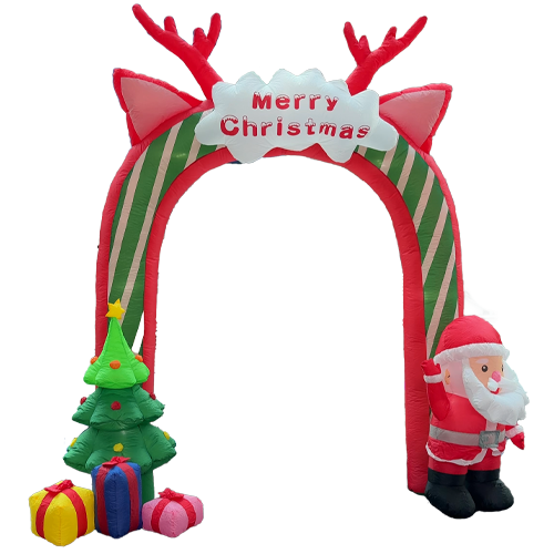 Diseñado para realzar la imagen de su marca durante la temporada decembrina, este arco inflable es la solución perfecta para atraer miradas y generar un ambiente festivo en eventos corporativos, puntos de venta y promociones especiales. Fabricado en tafeta de alta calidad, combina resistencia, practicidad y un acabado profesional que garantiza un impacto visual memorable tanto en interiores como en exteriores.