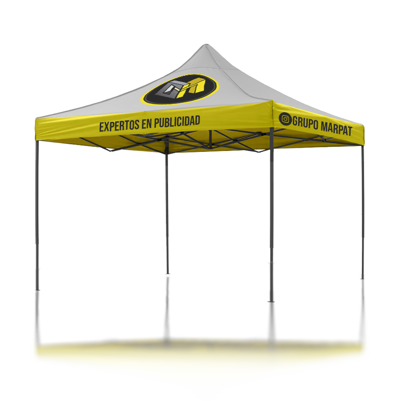 Estructura plegable 3×3 con capota de loneta impermeable personalizada y full color, ideal para empresas y emprendedores.