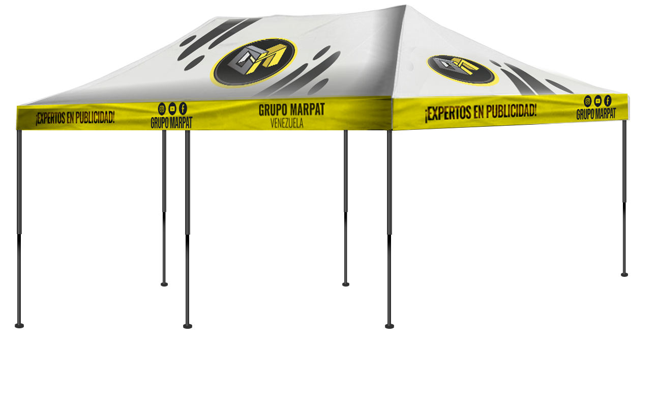 Estructura plegable 6×3 con capota de loneta impermeable personalizada y full color, ideal para empresas y emprendedores.